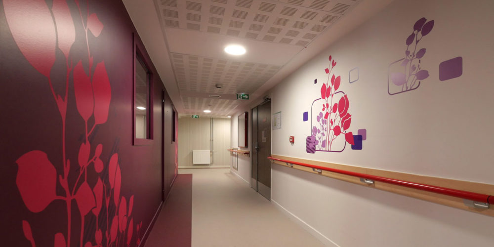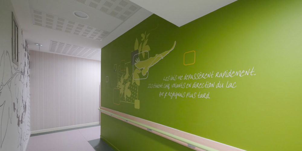 Le Foyer de Vie Les Bazennes, à Dunkerque, géré par l’association AFEJI, est une ancienne maternité totalement restructurée qui a ouvert ses portes début 2019. Cet établissement a pour vocation d’héberger et d’accompagner durablement des personnes adultes en situation de handicap intellectuel. Le projet des Bazennes est d’accompagner ses résidents dans un contexte favorable : activités stimulantes, lien social, mais aussi cadre de vie agréable et adapté. Grâce à l’équipe des Bazennes, l’Agence Treize a pu mettre à profit ses compétences déjà éprouvées en signalétique, habillages muraux et vitrophanie en particulier au service des établissements de médico-sociaux.